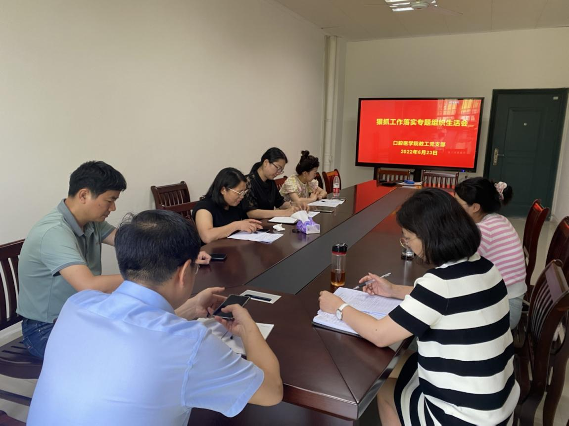 6月23日下午,jdb电子中国官方网站教工党支部在1号实训楼111会议室召开“2022年上半年狠抓工作落实专题组织生活会”。副校长胡振宇出席并指导会议,会议由党支部书记罗志红主持,支部全体党员参加。
