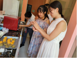 支部党员教师制作月饼