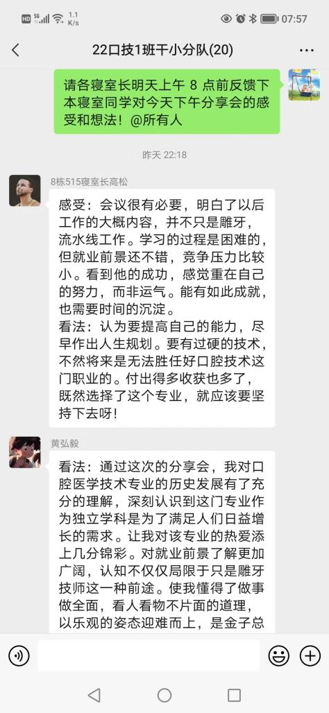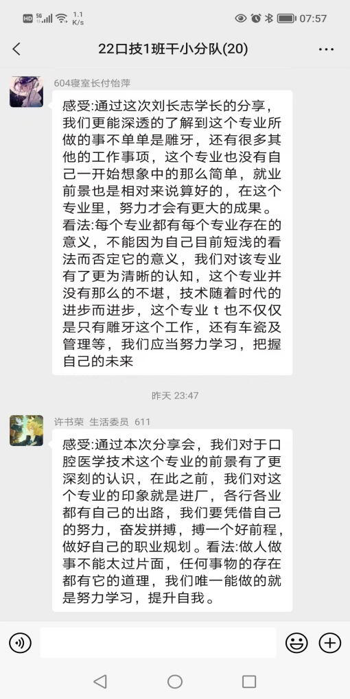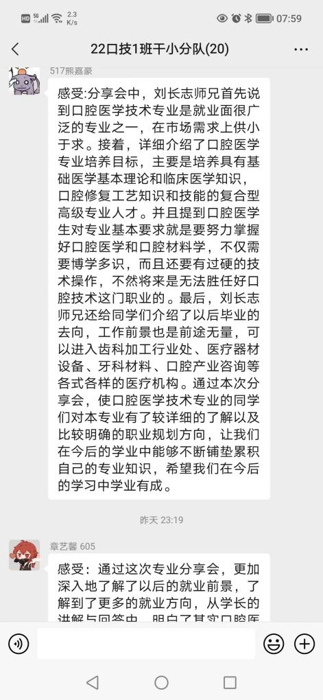 刘长志同学作为jdb电子优秀毕业生代表,在学生时期就先后荣获全国卫生职业院校口腔技能大赛雕牙排牙三等奖,深圳市口腔修复工职业技能大赛三等奖的荣誉。毕业后短短四年时间,已成长为浦江口腔医院技工室主管。宣讲中,刘长志结合自身奋斗的历程和从事行业,从专业发展历史及现状、固定修复义齿制作流程、数字化在口腔行业中的发展与应用及专业发展方向等方面做了介绍,同时用朴实的语言为学弟学妹分享了自己学习和工作中的亲身经历和感受。现场气氛活跃,同学们积极互动。