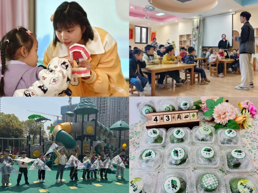 活动现场,学生党员通过生动有趣的PPT讲解、牙齿模型演示、互动问答等形式,向孩子们介绍了牙齿的结构、龋齿的形成原因、正确的刷牙方法等。小朋友们积极参与,踊跃回答问题,现场气氛热烈。随后,学生党员们在各班普及清明节的由来,带领小朋友们手绘风筝,分发青团。