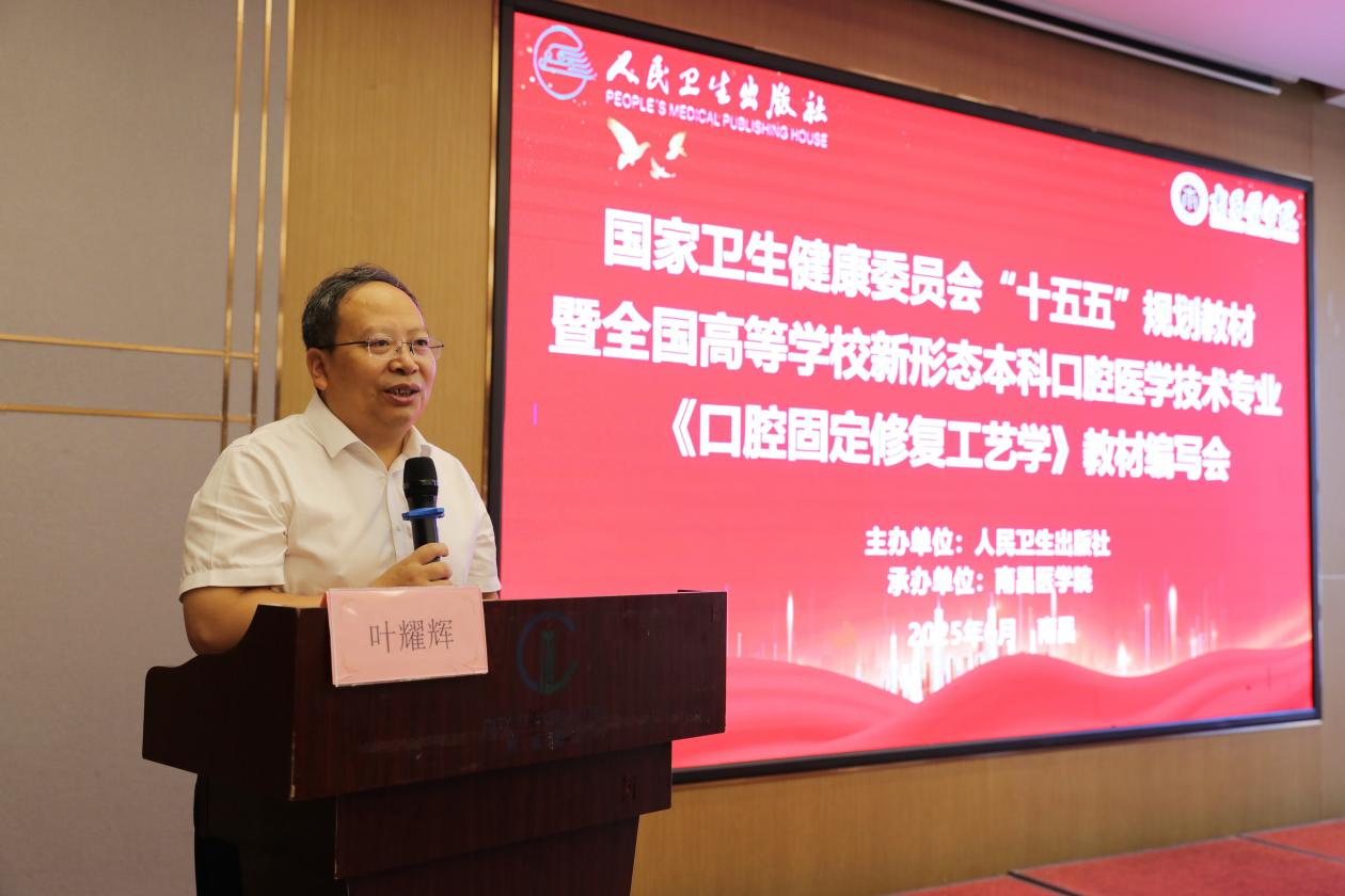 6月16日至18日,由人民卫生出版社主办,南昌医学院承办的国家卫生健康委员会“十五五”规划教材暨全国高等学校新形态本科口腔医学技术专业《口腔固定修复工艺学》教材编写会在我校召开。jdb电子中国官方网站党委委员、副校长叶耀辉出席会议,来自全国30余所知名高校及行业专家学者齐聚一堂,共同研讨教材编写的相关事宜。