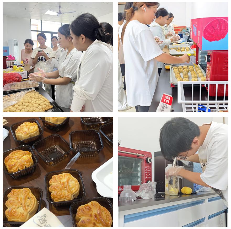 活动现场,专业烘焙老师为大家讲解月饼制作的步骤、技巧以及注意事项。在轻松愉快的氛围中,同学们纷纷挽起衣袖,化身“糕点师”,将美好的祝福融入一个个精致的月饼中。欢声笑语间,各种口味的月饼逐渐摆满了托盘,现场弥漫着浓郁的香甜气息。